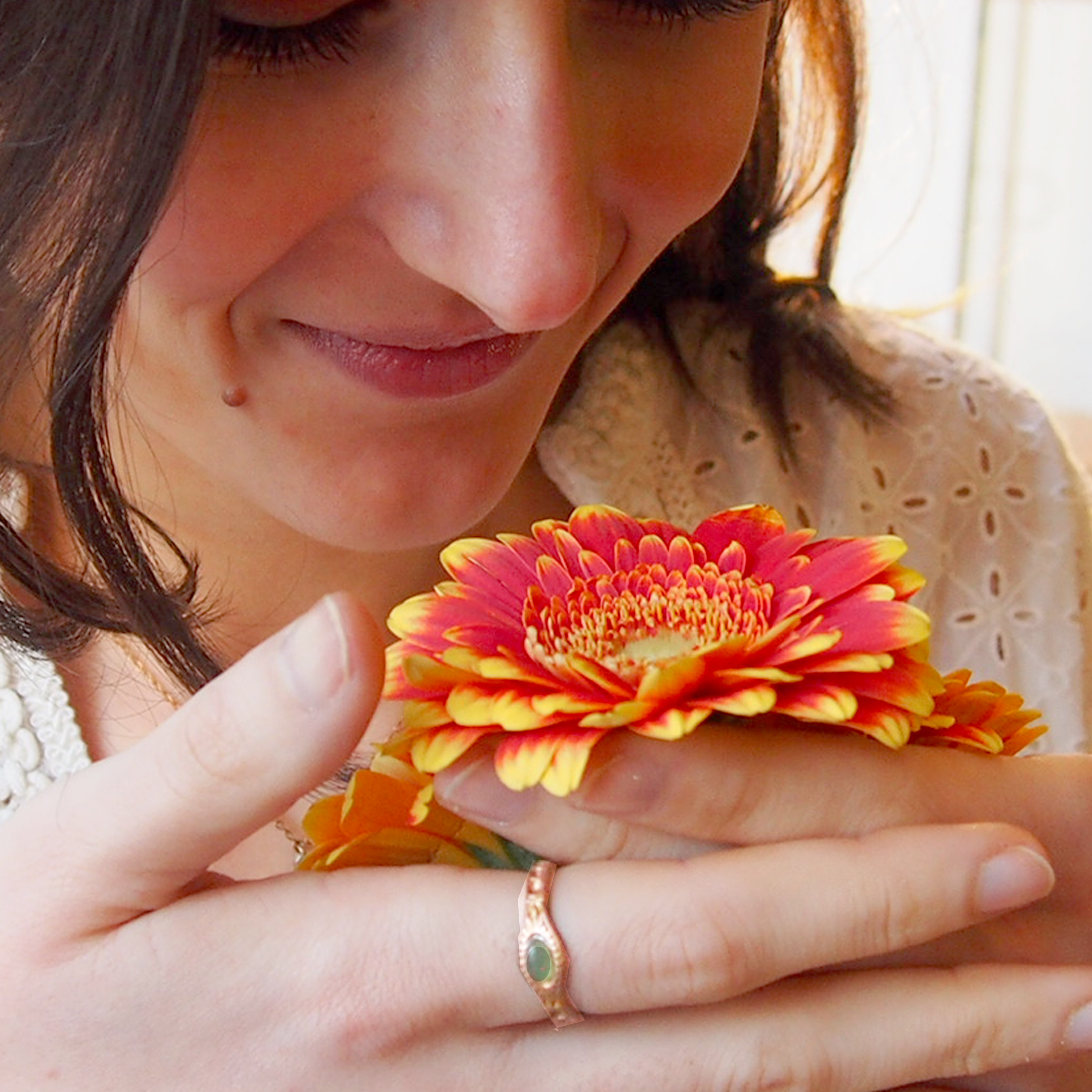 La collection Caribé est un ensemble de bijoux très fins, solaires, parsemés de pierres d'amazonite verte.