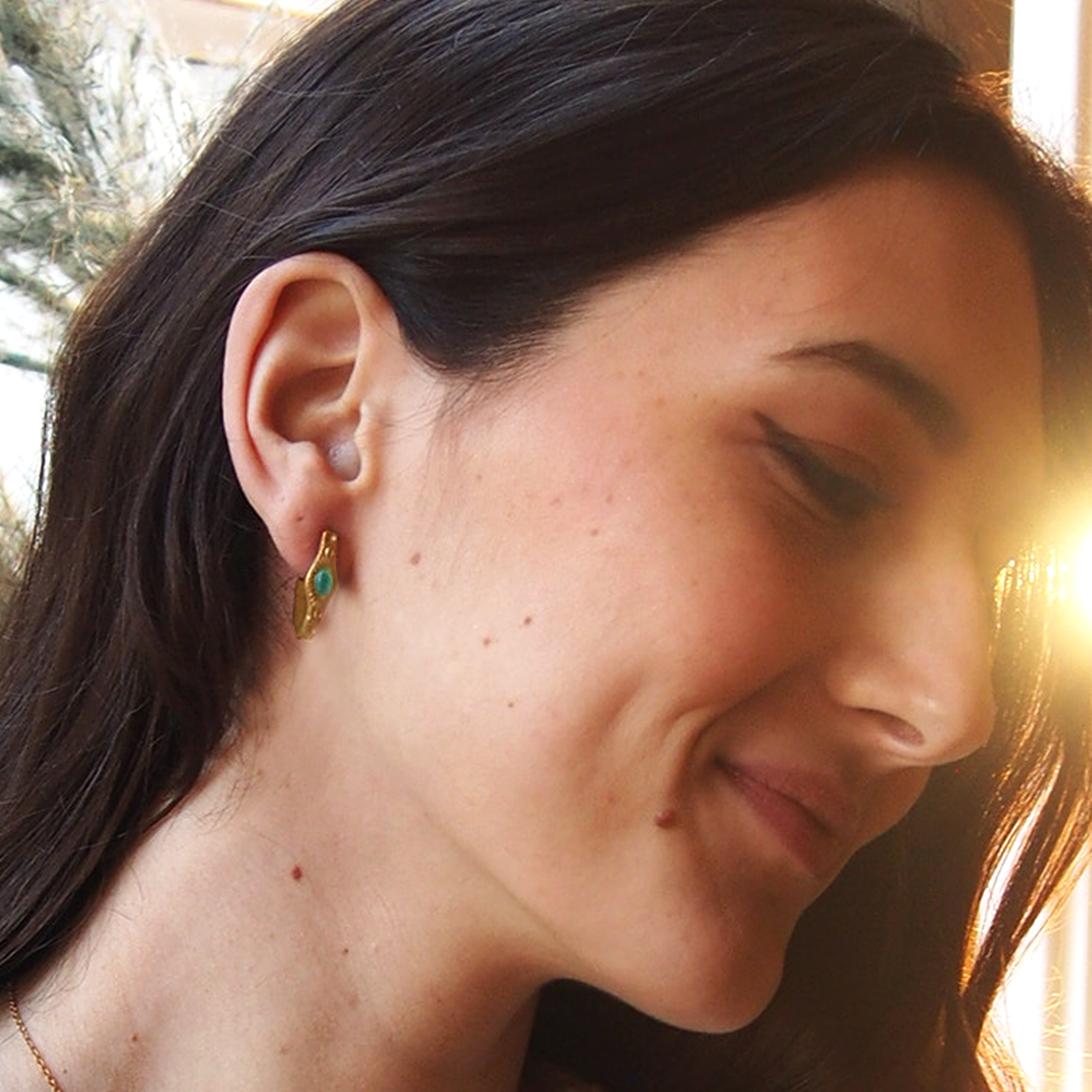 La collection Caribé est un ensemble de bijoux très fins, solaires, parsemés de pierres d'amazonite verte.