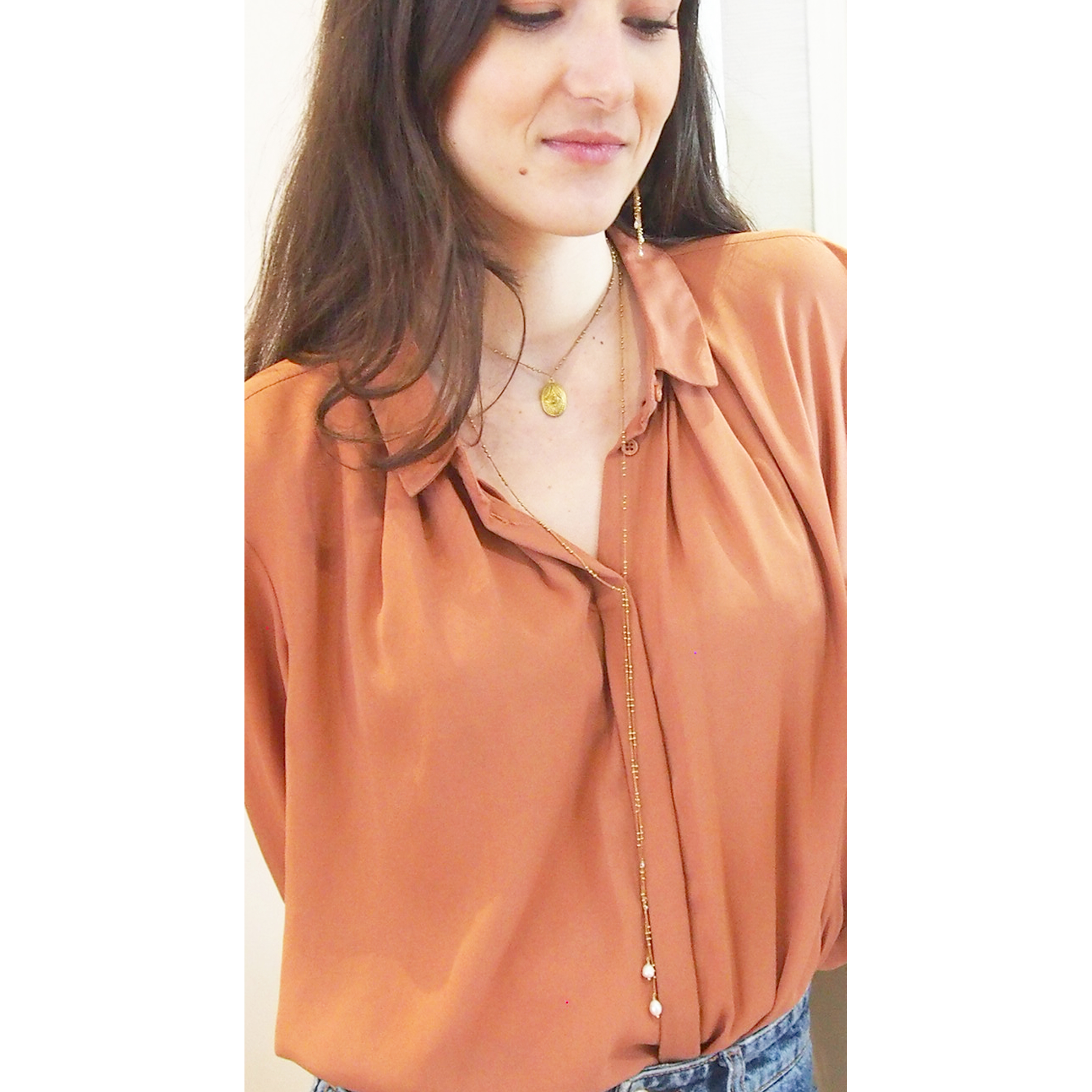 Délicat, vintage, a la structure atypique...le sautoir PALMA ne passera pas innaperçu ! Il se noue et est ponctué de perles baroques.