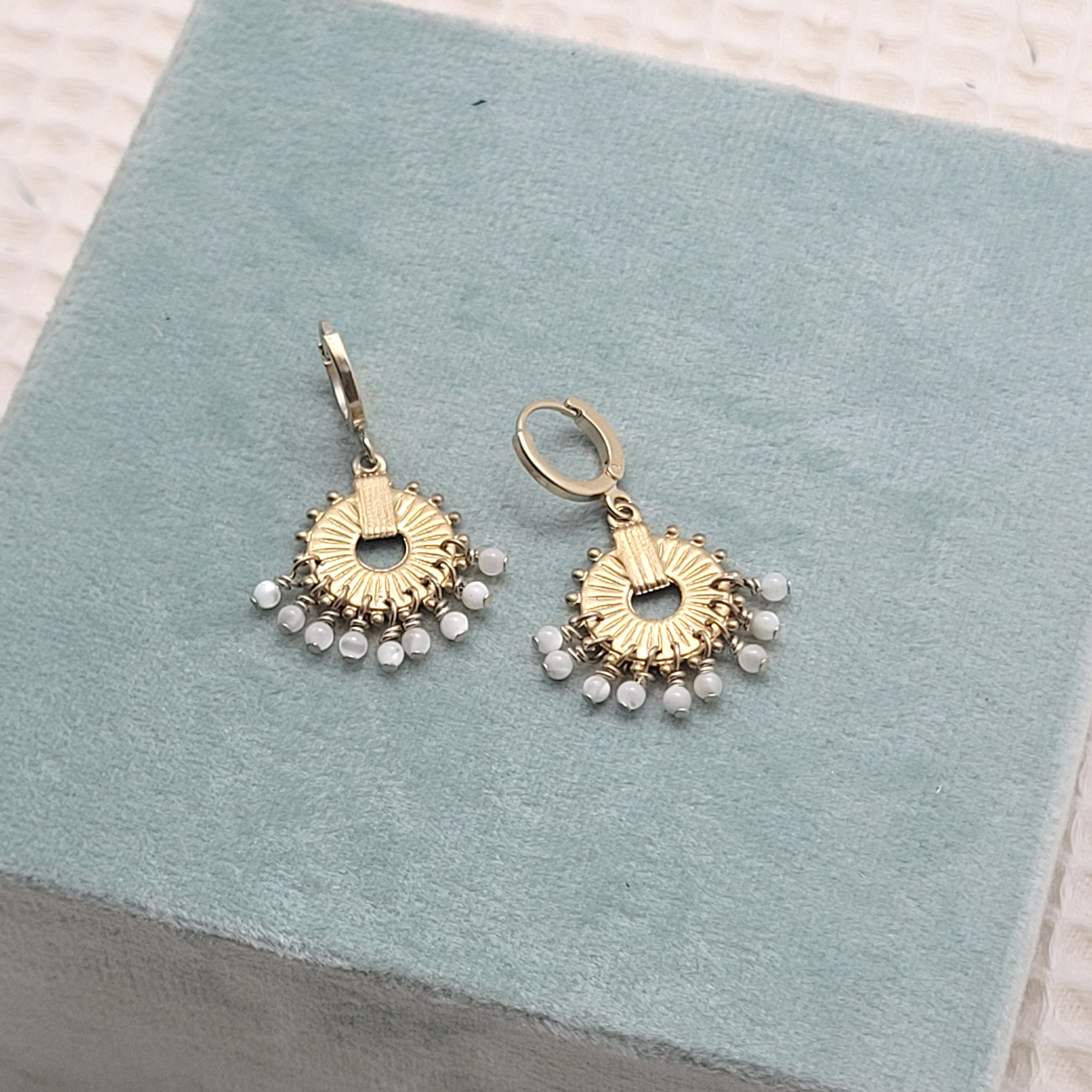 et réchauffer les coeurs. L’estampe travaillée par nos soins, tout en repercé, est ponctuée de 9 pierres de nacre .