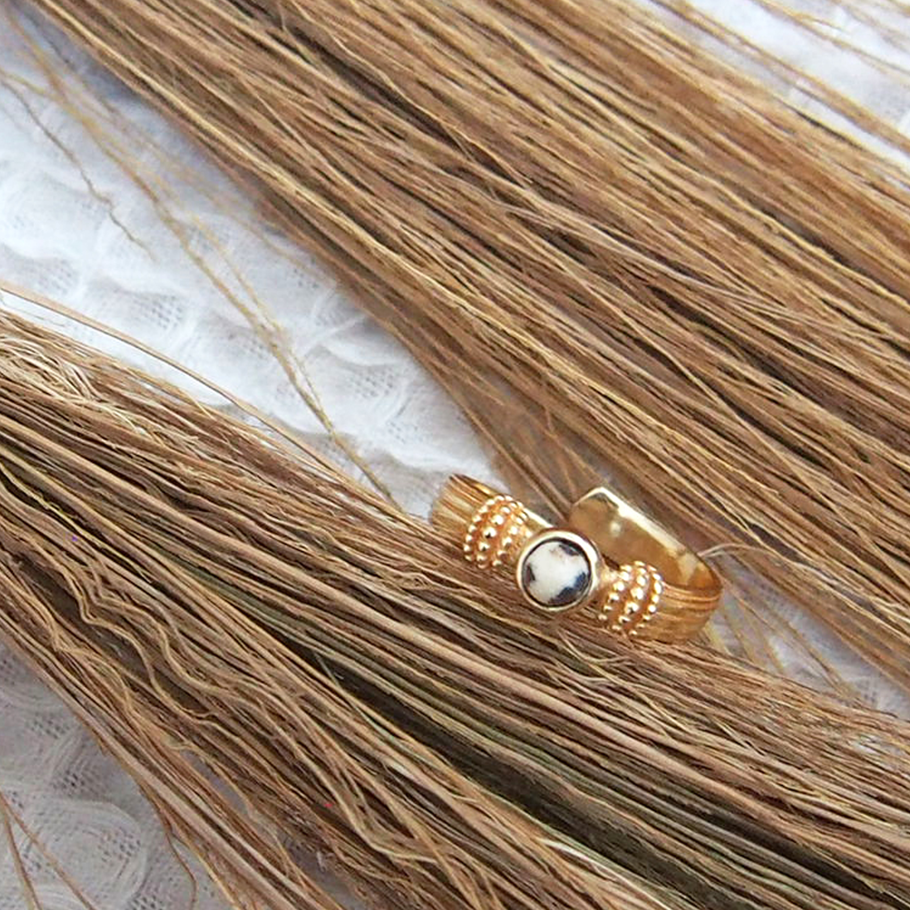 Elle est réglable, la pierre de jaspe mesure 4mm de diamètre.