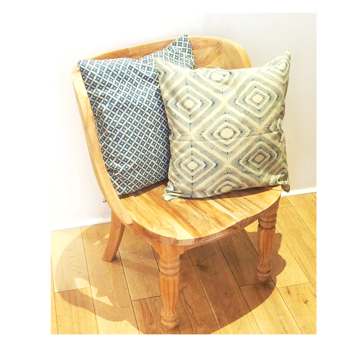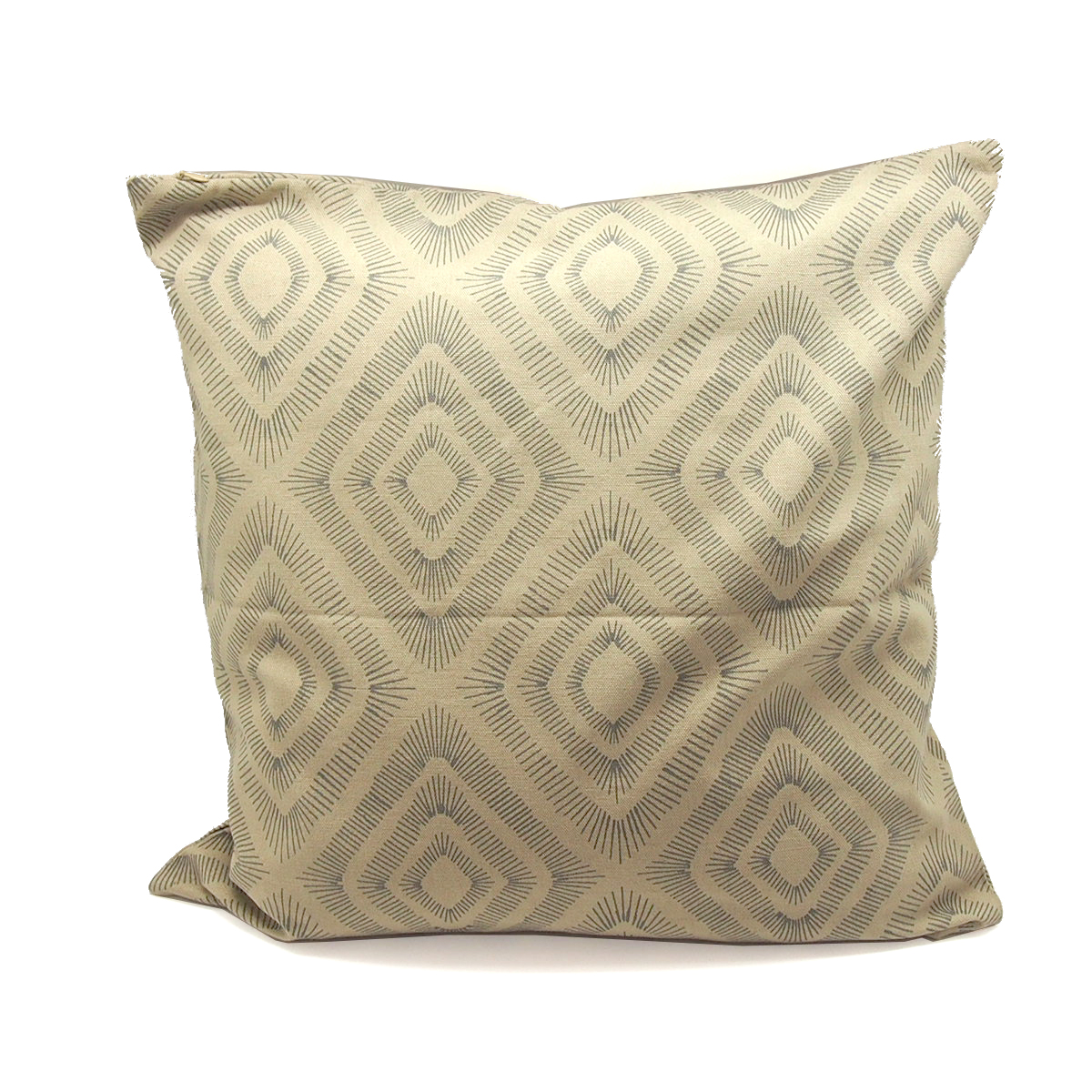 Un coussin en coton épais reprenant le motif CALYPSO gris et beige