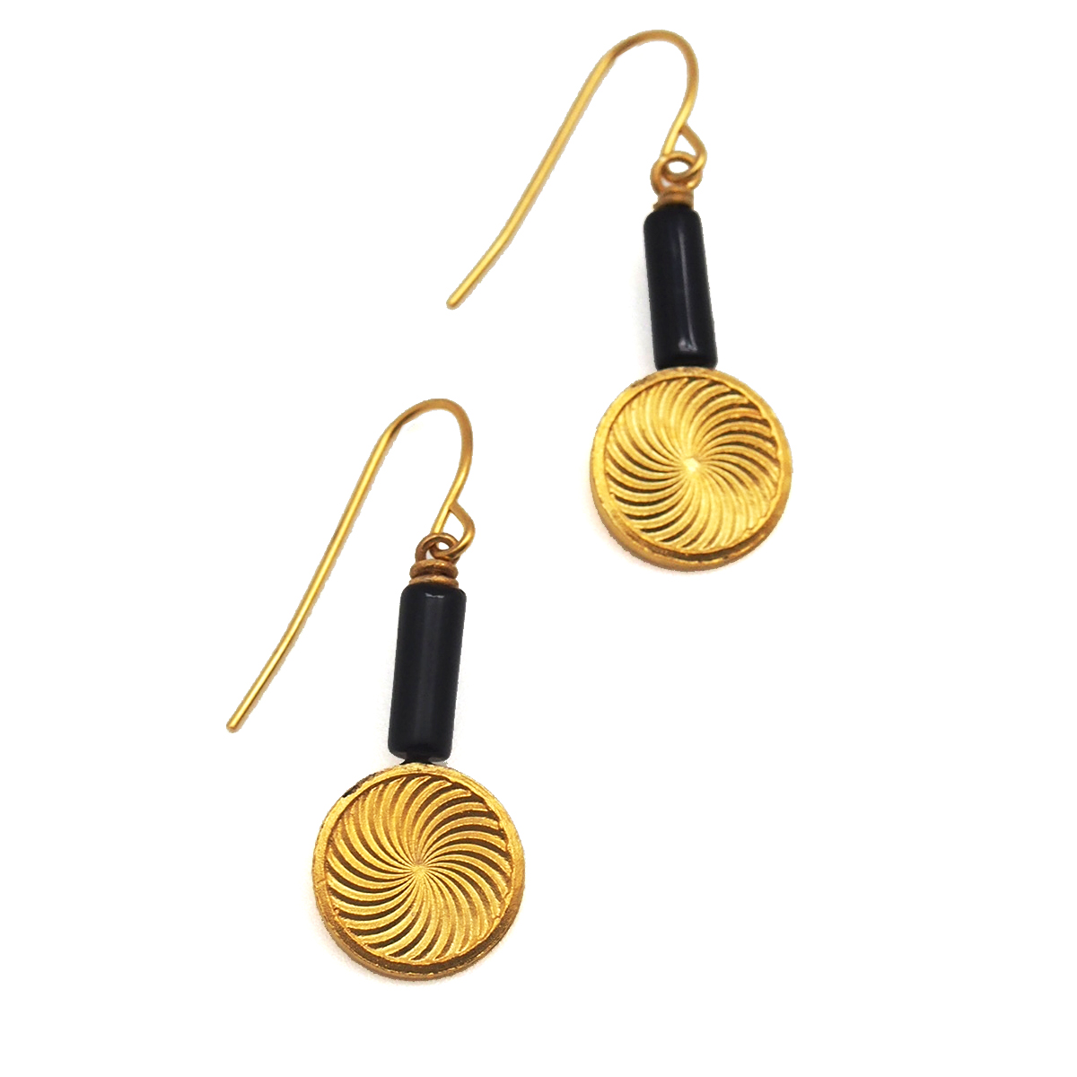 Laiton recouvert d'or 24 carats et pierres semies précieuses d'onyx.