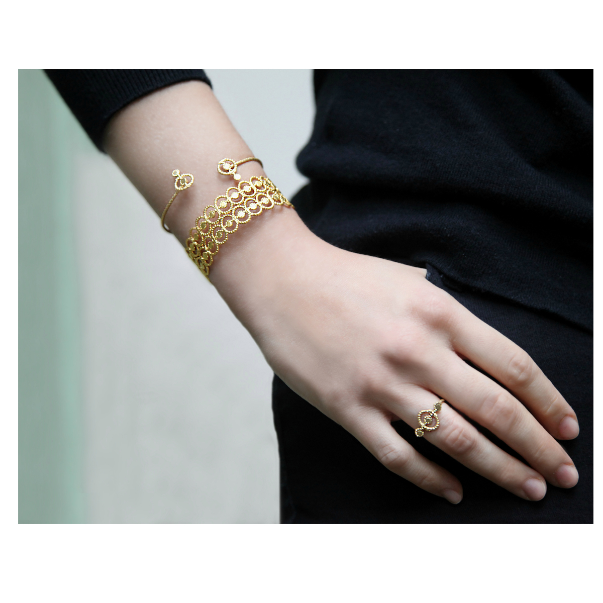 La bague GAUDI reprend le motif de la collection, travaillé main dans notre atelier.