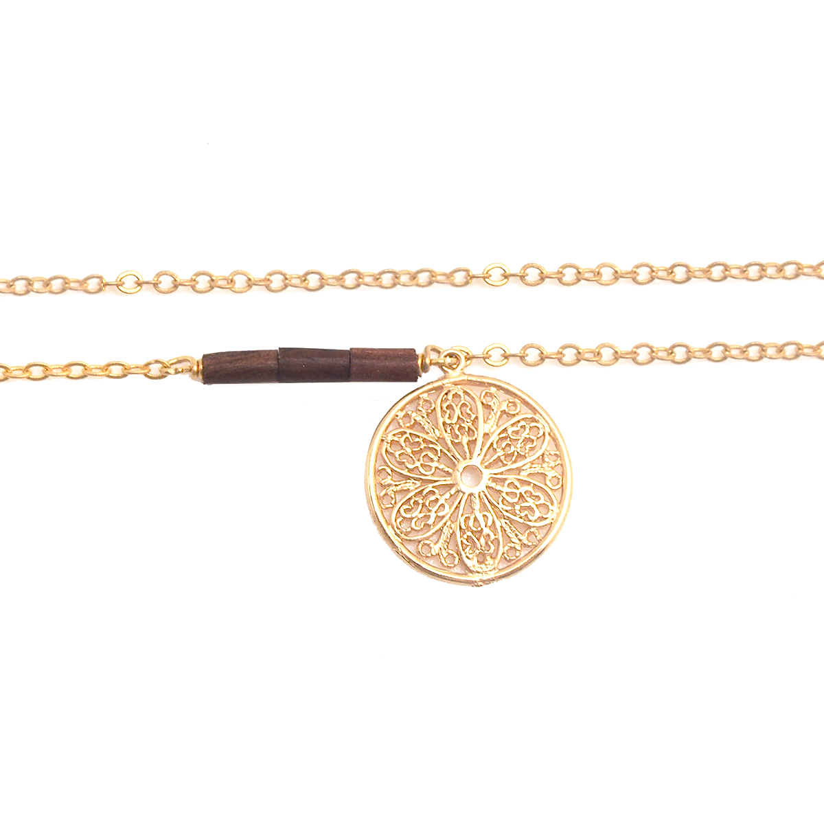 Laiton recouvert d'or 24 carats et éléments en bois d'ébène de Madagascar.