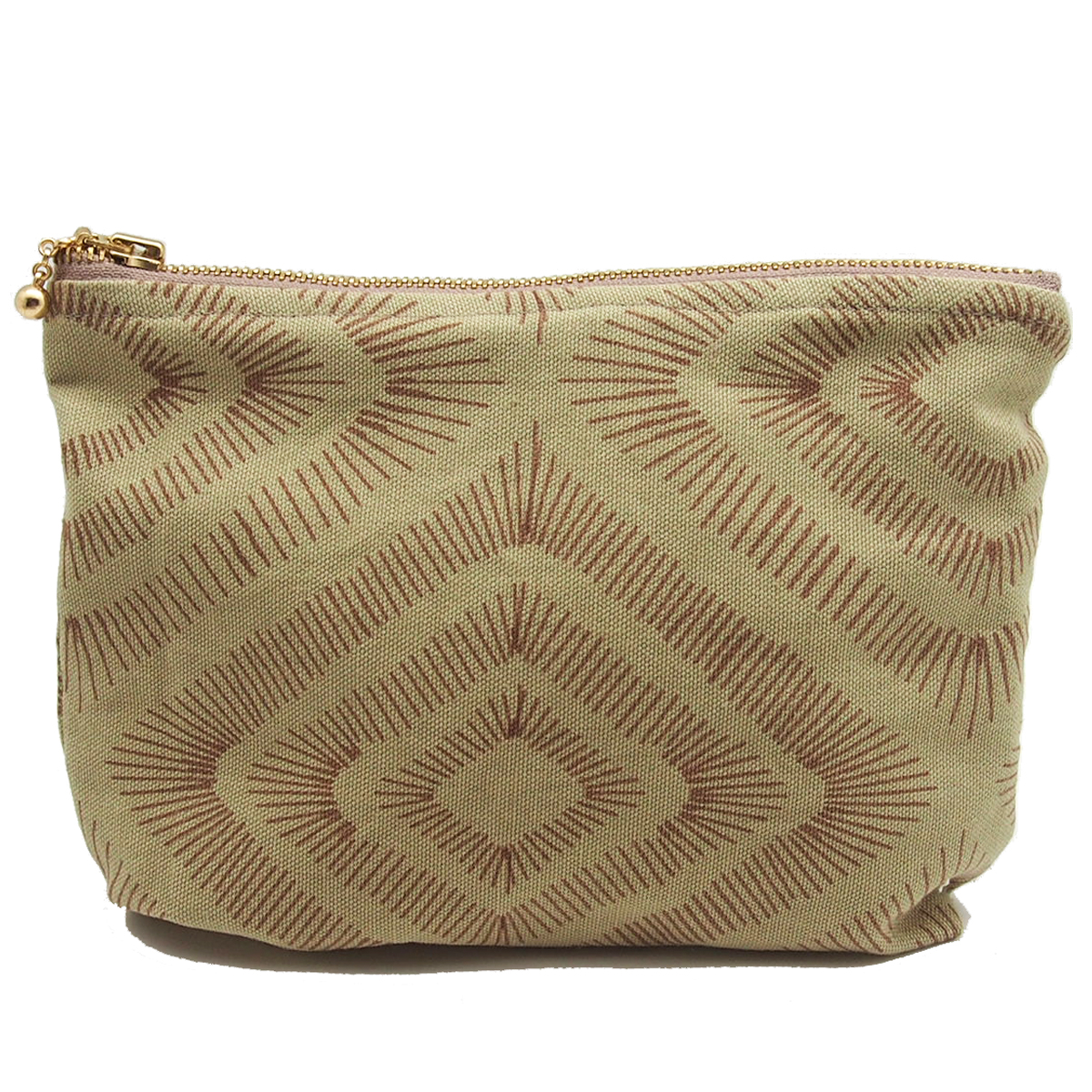 Une pochette en coton épais reprenant le motif CALYPSO, brique et beige