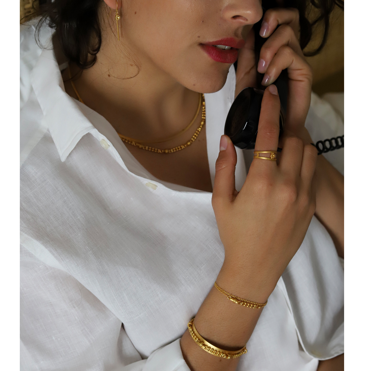 Le bague POMPEI est dorée à l'or fin 24 carats. Notre dorure est mate et de belle qualitée.