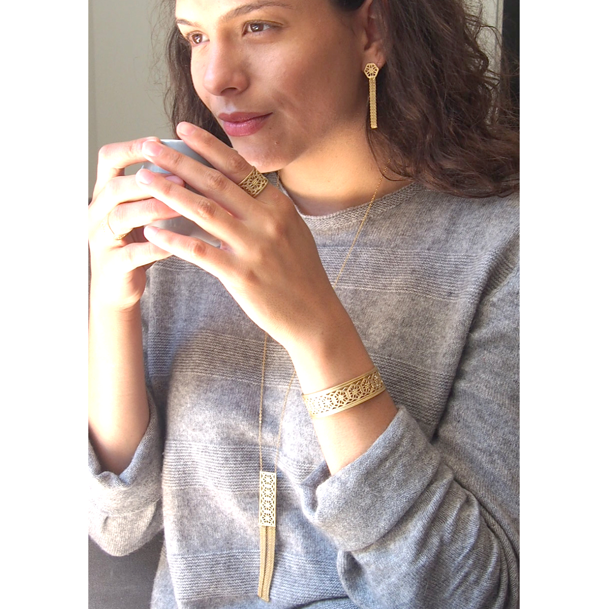 Ces boucles sont travaillées main dans notre atelier. Elles sont ensuite dorées à l'or fin 24 carats. Notre dorure est mate et de belle qualité.