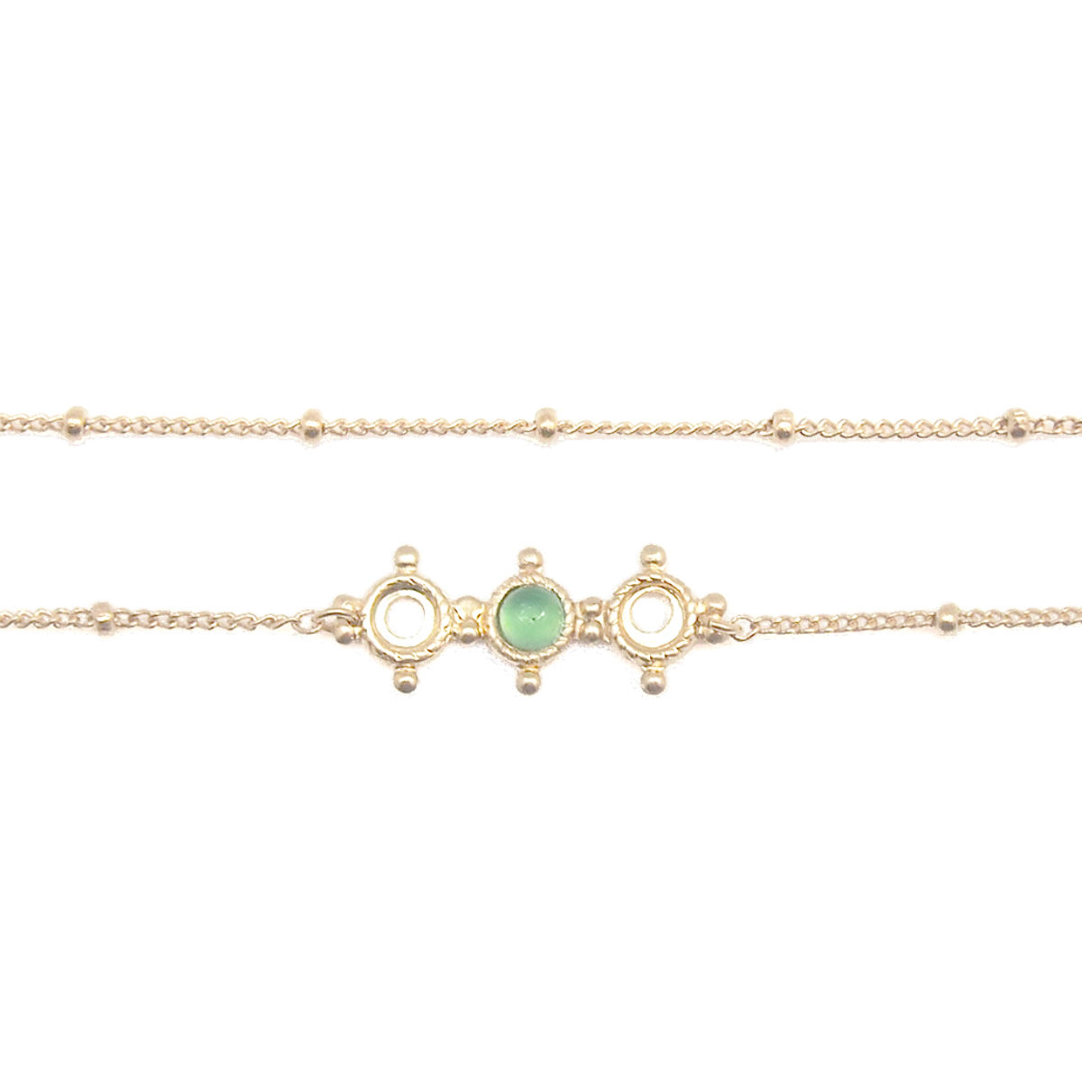 Le bracelet double VOLVER est doré à l'or fin 24 carats , ponctué d'agate verte.
