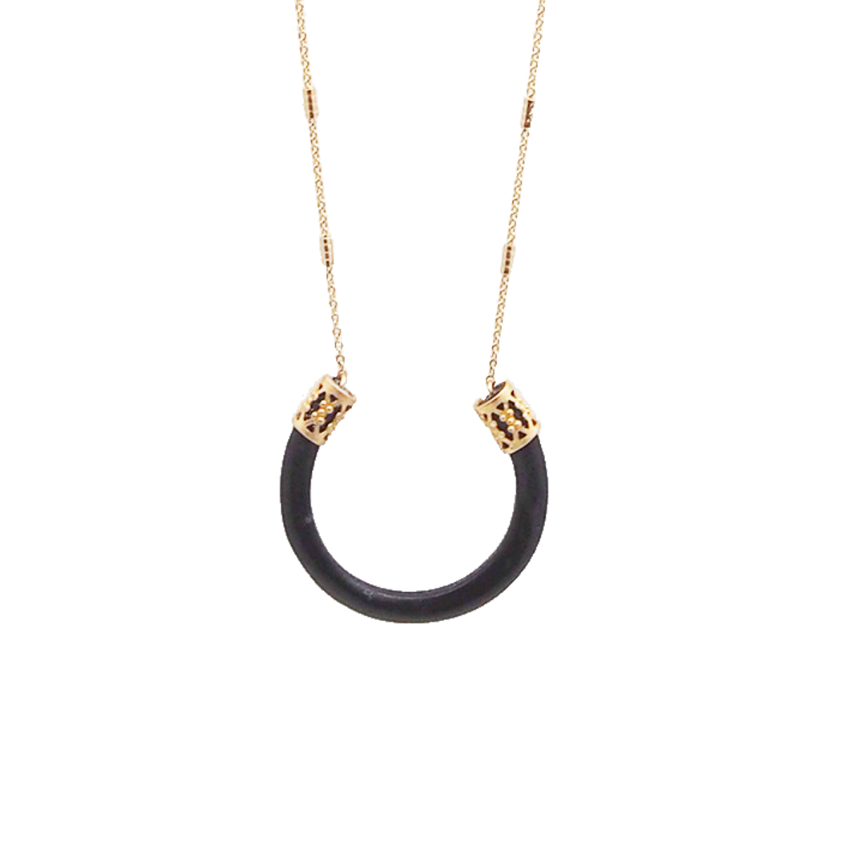 Le sautoir PATA PATA est doré à l'or fin 24 carats. Il est ponctué d'un élément naturellement noir en corne de zébu.