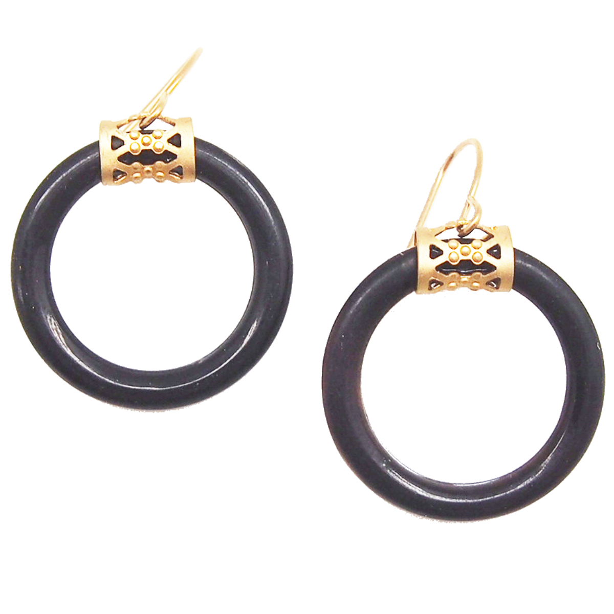 Les boucles PATA PATA sont en corne de zébu, ponctuées d'un élément doré à l'or fin 24 carrats.