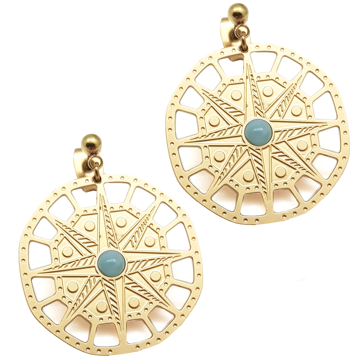 Comme une invitation à se rappeler de ses rêves, nos boucles CAP sont très graphiques et poétiques, ponctuées d'une pierre de larimar bleu.